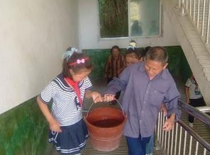 在孟良崮敬老院内,小学生们为老人们送去精心准备、并且在蛋壳上写有孩子姓名的鸡蛋,祝福老人身体健康。同时,小学生们还为老人们表演了笛子吹奏、小合唱等节目,在表演之余,界牌中心小学的孩子们还力所能及的帮助残疾老人整理床铺、打扫卫生、陪老人聊天,让敬老院老人的度过了快乐的一天。