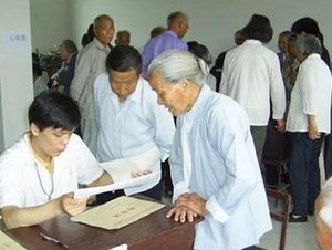 一个上午,30多位老人全部接受基本体检,医生们将老人们的“体检报告”写在纸上,留给老人。