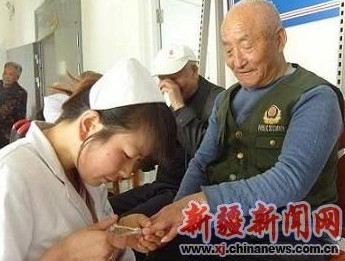 据了解,自去年该团敬老院开办以来,该团医院己经是第三次组织医务人员到这里义诊。该团护理部主任介绍说,这次参加义诊的护士大多是90后的年青人,目地是让她们近距离的接触这些老人,今后在工作中能够更加耐心、细心、爱心的为患者服务。