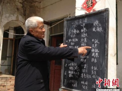 拾方平老人向记者介绍敬老院的一周食谱 朱志庚 摄
