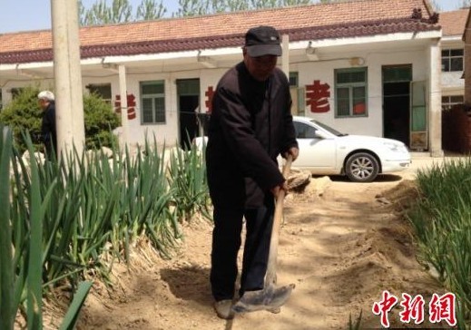 为吃到新鲜蔬菜还能节约费用,老人们自己在敬老院空地上种菜 朱志庚 摄