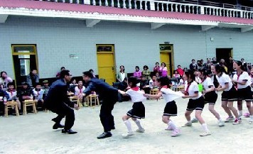 敬老院里,酒店的员工们与老人们拉起了家常,与孩子们在院坝里做起了游戏,现场一片欢声笑语。随后,酒店员工与沙坪小学的学生们共同为敬老院里的老人献上了一场精彩的文艺演出,欢快的舞蹈、朗朗上口的歌曲,老人们不时与台上的年轻人一起互动,整个敬老院里洋溢着温馨欢乐的氛围。