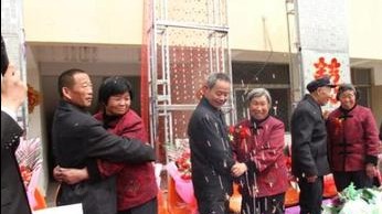 昨天上午,丰县师寨镇敬老院的5对五保老人举行了一场简朴的集体婚礼,他们中最大的73岁,最小的50岁,在人生的最后阶段,找到了属于自己的另一半。每对老人都有一段让人动情的故事,而红娘就是敬老院院长。