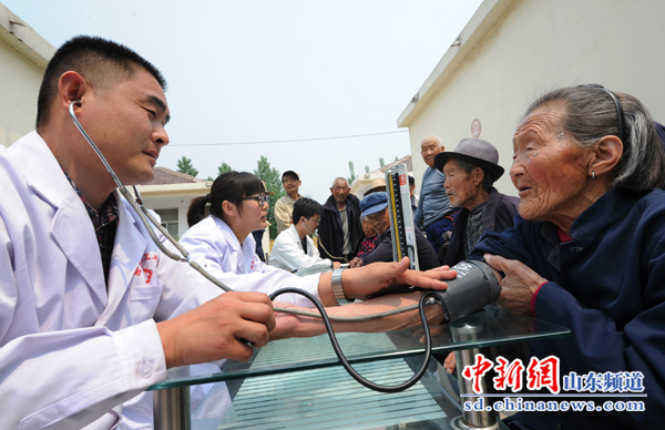 中新网山东频道枣庄5月3日电(签约作者 李宗宪 通讯员 赵连友)5月3日,枣庄市山亭区西集镇卫生院的青年志愿者为敬老院老人义诊。当日,枣庄市山亭区西集镇卫生院的部分青年志愿者来到该镇敬老院,义务为老人查病看病,讲解春夏疾病预防知识和保健常识,以此迎接“五四青年节”的到来。