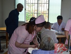道县2013年科技活动周期间,由县科技活动 周组委会组织县卫生局、县人民医院、县中医院等共15名科技医务人员,利用科技活动周下乡的有利时机,用自己多年来所学的专业知识和经验前往新车镇等敬老 院为40多老人进行健康的检查。活动现场,医务人员怀着一颗医者的赤诚之心认真地为老人们测量血压,做心脏听诊,并针对老人们提出的不适症状,适当做出解 答,提供咨询和诊断服务,免费发放药品价值达3000多元;他们热情的态度和丰富的经验获得了群众的一致称赞。当听说敬老院里还住有很多孤寡老人时,他 (她)们临时决定专程为这些老人做一次义诊。来自上汶村的蒋开福老人高兴的说:“难得呀,想不到县里、镇里领导还惦记着我们这些老人!”。