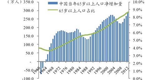 事实上,我国养老问题早已是迫在眉睫。在平均预期寿命增加和独生子女政策的双重作用下,中国社会的老龄化正不断加速。根据2010年人口普查的结果,我国60岁以上老人占比约为13%,达到1.74亿。而到了2012年,我国65岁以上人口比重已经上升至9.4%,未来十年人口抚养比例显著上升。