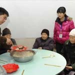 ,与老人们一起包水饺、吃水饺,送上爱心与关怀。