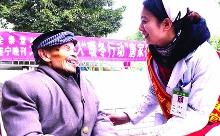 12月26日下午两点半时,本报携手爱心老人、爱心企业及船山区团委走进唐家乡敬老院,为老人送去衣服、药品,并开展了义诊活动,给老人们送去了温暖、送去了健康。