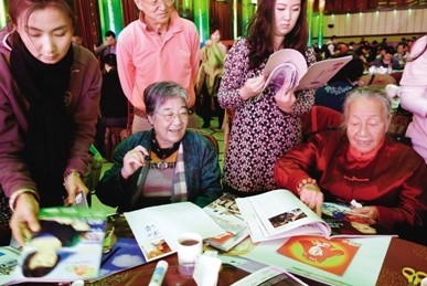 老人们剪下喜欢的图片粘贴到白纸上,反映他们的愿望。昨天,来自北京各个区县的99位老人通过“曼陀罗”游戏,向儿女们诉说“梦想”。