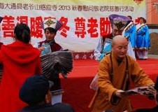 在慈善演出中,智慧法师为大众慈悲开示:关爱老人、尊敬老人、孝敬老人、共建和谐”。本着以“老吾老以已人之老”的心态,带着情感去做好老年人的工作,帮助老人们解决力所能及的困难,尽自己的绵薄之力,给老人们多一份关爱,形成全社会爱老、尊老、敬老、助老的良好社会风气。敬老爱老是修养,是文化,更是人性的升华,同时也滋生了情感,丰润了生活,创造了生命的意义。