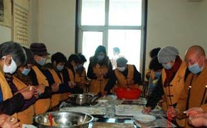 为敬老院的130位老人包新年饺子。(图片来源:凤凰网华人佛教)