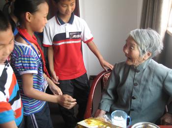 在敬老院里,孩子们捧出了各种糕点送给老人,并献上了他们自己亲手创作的绘画作品和真诚的祝福。同学们热情地陪老人聊天,老人们看到孩子们的到来,分外开心,打开音响,高兴地为大家表演了精彩的舞蹈,并现场为学生们进行了书法展示。学生们为老人们的表演拍手叫好,宁静的敬老院里一时间热闹无比。临别时,学生们对敬老院的老人依依不舍,并与他们一起合影留念,老人们亲切地叮嘱学生一定要好好学习,短暂的相聚让他们结下了深厚的情谊。