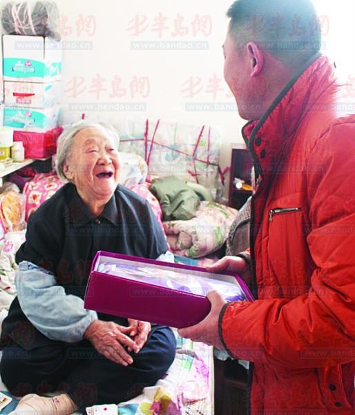 此前,爱心企业青岛金亿通集团为老人购买了100套保暖内衣,在上周已经为85位老人送去了新内衣,剩余的15套衣服,金亿通集团总经理杨军打算继续送出去。“有客户听说我们在为贫困老人送新内衣,从我们这里拿去了5套送给困难老人。现在我们手中还有10套内衣,另外,听说有一位102岁的老奶奶的被子都破了,这么大年纪了也没穿过新衣服,昨天我们为她购买了被子、枕头、褥子 、棉袄,这次给老人全换新的。”杨军告诉记者。