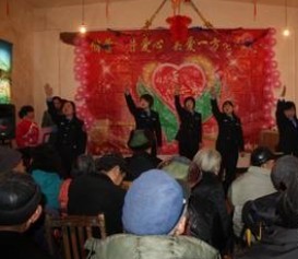 为让老人了解十八大精神,了解党的惠民政策,感受到社会主义大家庭的温暖和党的关怀,民警为敬老院老人送去温暖的同时,也把十八大精神传到老人心中。在敬老院休息桌旁,民警给他们读报和宣讲十八大会议召开情况,精彩之处,老人一齐不时发出幸福的笑声和掌声。听完“宣讲员”绘声绘色的宣讲后,71岁的辛克武老人动情地在小本子上写下了“感恩迎春十八大,中华儿女敬老人”和“亿民迎来中国梦,小康生活得民心”两副对联。