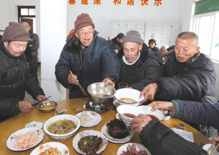 昨天,德清县乾元敬老院内,老人们吃着丰盛的杀猪饭笑逐颜开。腊月里杀年猪、吃杀猪饭是浙北农村的传统习俗,乾元镇城北村的村民和城北警务室的民警将大伙一起养的猪、土鸡、鱼和种的蔬菜拉到敬老院,给老人们准备了这顿热热闹闹的杀猪饭。