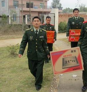 虽然天气寒冷,但得知官兵们要过来,老人们早早就守候在门口。一见面,官兵们就和老人们亲切地攀谈起来,了解老人们最近的身体状况、生活情况,打扫院子和屋内的卫生。战士何欢、晓勇和电视台的工作人员忙着连接线路,安装电视,调试信号。一会儿的功夫,“文化大餐”出炉,戏剧、小品还有动物世界,老人们高兴得合不拢嘴,“有了电视机,这回天冷不出屋也不愁解闷了,真谢谢你们啊!”