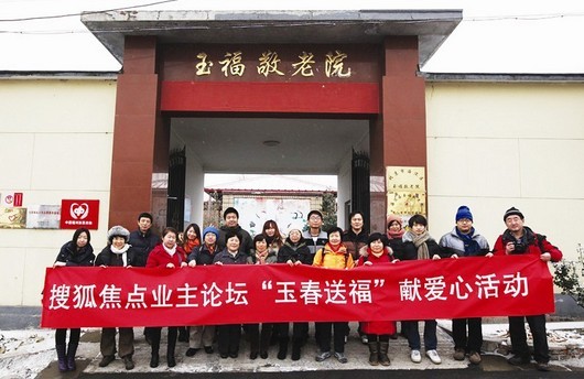 1月20日,京城降下瑞雪,搜狐焦点业主论坛如期举办“玉春送福”新春爱心公益活动。三十多位网友走进京西大觉寺脚下的玉福敬老院,为老人们送去温暖和欢乐。