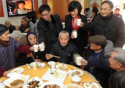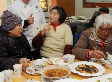 嘉兴在线1月24日讯 今天中午,在南湖区新兴街道老年公寓,来自隆聚餐饮集团的大厨黎荣恒,询问着老人们口味是否合适,得到老人们的一致夸奖后,他说道:“只要你们开心,明年我们还来。”。据了解,这是隆聚餐饮集团连续第八年将年夜饭送进老年公寓,也是黎大厨第三年来老年公寓掌厨,和往年相比,除了老年公寓的4桌年夜饭外,今年还多了110份送到新兴街道各个社区居家养老服务中心的个人年夜饭。