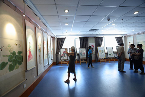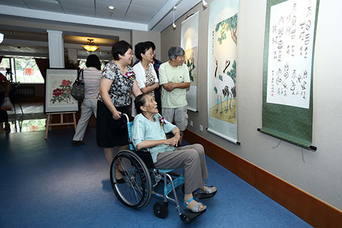 这是第二位在双井恭和苑举办个人画展的老人——张峻珠。2013年7月5日,80多岁的张峻珠在双井恭和苑<红房子>电影院举办了个人工笔画展启动仪式。现场高朋满座,老人的众多亲朋好友、战友、晚辈,以及恭和苑内的左邻右舍纷纷前来祝贺并参观,每个人都表达了对她的祝福。张奶奶回忆起过去的生活与情谊,又提到了现在恭和苑安逸充实的生活,满是感动与开心。
