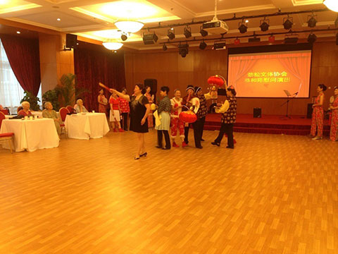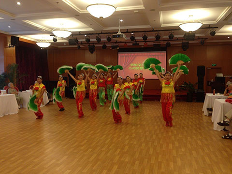 8月16日下午,北京双井恭和苑的二楼多功能厅迎来了“劲松文体协会恭和苑慰问演出”,苑内60余位老人观看了这次演出。演出在精彩而热烈的“激情扇舞”中开始,悠扬的乐队和声、演绎出老北京历史精髓的情景歌伴舞、温暖的歌伴舞《烛光里的妈妈》、绕梁三日评剧、从韩国舞到台湾的《陪你一起看草原》等精彩节目,现场掌声不断,为苑内老人奉上一次歌舞盛宴。期间,现场的所有人与本月过生日的老人、恭和苑员工一起分享了生日蛋糕,大家如同一家人,也是「恭和苑」作为“我们的家”的生动写照。努力为中国的老人创造有尊严、优雅的养老生活,是「恭和苑」的梦想,更是全社会的梦想。