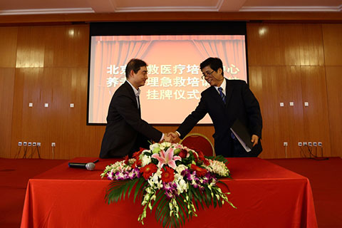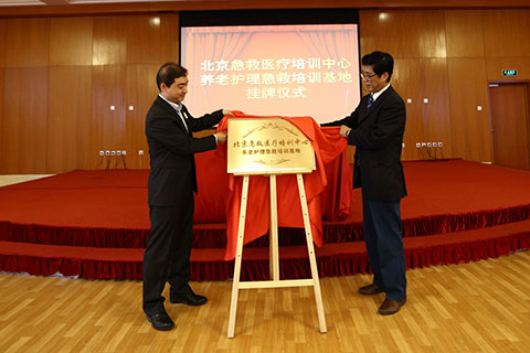 为满足养老机构对老年人突发情况下的急救技能需求,为 “医养结合”试点向纵深推进进行进一步的探索,10月29日,由北京双井恭和苑和北京急救医疗培训中心合作成立的京城首家“养老护理急救培训基地”在北京双井恭和苑正式挂牌。