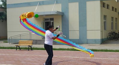 图6 老人表演抖空竹,大家纷纷叫好。