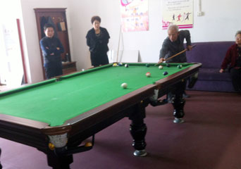为 了丰富我院住养老人的娱乐生活,增进彼此友谊,2013年10月23日,我院特举办住养老人台球比赛。上午九点,大家准时聚集台球室,商量好规则后,抽签 进入比赛。比赛分初赛、复赛、决赛,经过几番角逐,我院住养老人刘富贵夺得了本次比赛的冠军,亚军获得者是我院住养老人王明启,季军为岳淑荣。