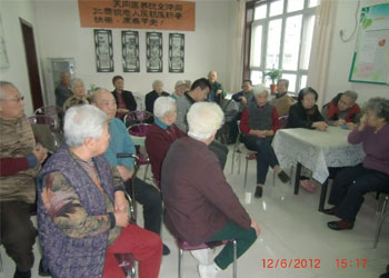 会上老人们围坐在一起,胡海涛与我院住养老人面对面地讲解2012年天津市城乡居民基本医疗保险政策的改革制度,老人们边听边拿笔记录下实用的政策。宣讲过后,老人们还一对一地咨询了很多医保问题,老人们都说此次活动实用性强、指导性强。