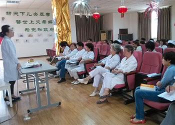2013年5月24日,我院在多功能厅召开了以“转变观念创新,服务提升品质”为主题的医护大会,我院张婼婼院长主持了会议。大会首先就医护型养老机构的医疗护理、如何提升我院的各项服务水平等问题进行了探讨,然后对我院医护人员提出了更高的要求,不仅医疗实践操作需要规范化,同时在着装、礼仪方面也强调了规范化的重要性。最后要求我院各部门的负责人每周都要上报本部门的培训计划,旨在提高我院年轻医护人员的理论知识与实践操作水平。
