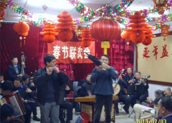 2013 年2月3日 上午8点半 来自天津市老年健康协会技术团的各位出色表演者 带着欢快的气氛来到了延丰老人院,为本院的所有老人进行了一场精彩的曲目表演,各位表演者的精彩表演得到了所有人的热烈响应,其中还有与老人间的互动也是给整场演出营造了更好的氛围。虽然在一起的时间不长但是他们给老人带来了无比的快乐与新春祝福!