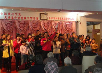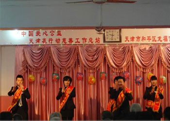 今天上午,龙福宫和平院迎来了中国爱心公益天津在行动慈善工作总站的志愿者,他们用精彩的演出在这寒冷的冬季为院里老人送来了一股和煦暖流。龙福宫老年产业连锁机构董事长兼总经理张文革先生代表龙福宫向志愿者们致以诚挚的祝福,感谢志愿者们几年如一日、通过无私的奉献,默默地为我们龙福宫老人院的老人家们带来欢声笑语。