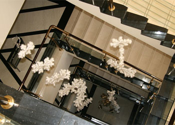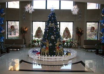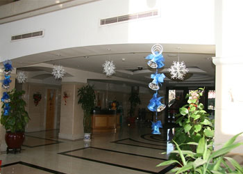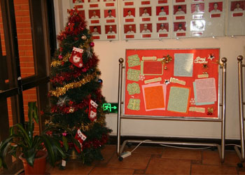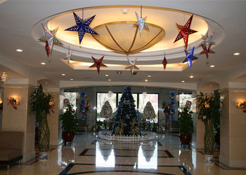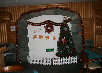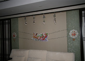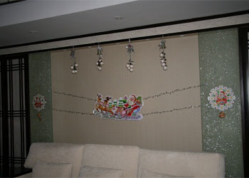 在大堂里,我们树起了圣诞树,悬挂上彩灯,如银河般的蓝白彩球从树顶垂下,还有周围的雪花、铃铛、花球映衬着,将养老院装扮得如童话般美丽。再来到餐厅,挂起了彩旗、彩花,让沉稳的餐厅也有了一丝活泼的气息。再看看西餐厅倚着的那颗圣诞树,悬挂着美美的各色小饰物,如同一个个小小的精灵来到养老院,告诉老人,圣诞节快要来啦!