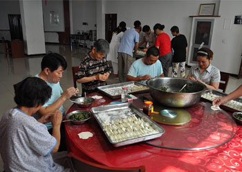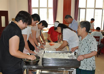 今天,养老中心全体员工与入住老人们一起包头伏的饺子,老人们都有说有笑的,就像一家人一样。老人们说:“中心应时到节都为我们老人想得特别周到,在中心跟在家里一样。”
