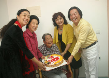 随后,曹会长和王锁立主任等领导为我院三无老人代表发放了慰问金,并与老人们亲切合影。活动结束之后,一行人来到介护科601室看望了我院最高寿的老寿星缪幼宸爷爷,缪爷爷虽然已经106岁高龄,思维意识仍然很清楚,曹秀荣会长和王主任一行人为老人献上精美的祝寿蛋糕,并与老人亲切交流、合影,随行媒体记者还对老人进行访问。曹会长等人与缪爷爷依依话别之后又来到介护科五楼阳光大厅探望了另外一位百岁老人李应信,李爷爷1913年生人,今年整整百岁高龄,看到慰问人群,李爷爷面露微笑,并翘起大拇指表示欢迎和感谢,曹会长等人纷纷称赞李爷爷真是位“老帅哥” !