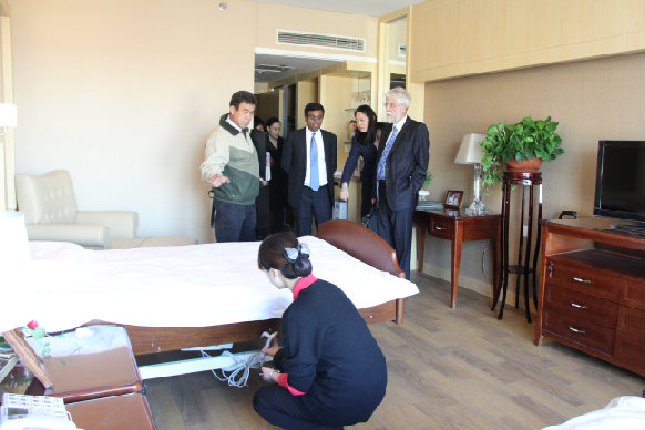 KINGSLEY的客人参观了公寓的样板间、康复中心、医疗区、娱乐室等,对和熹会老年公寓的环境及硬件配套设施给予了极大的肯定和好评!