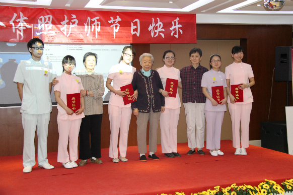 此次大会之前,照护部领导为选出和熹会首届照护之星在老人,照护师、管理者之间进行了无记名投票。照护部主任石桂珍在会上宣读了照护之星名单,荣获此次殊荣的分别是朱珊、刘薇、张倩、汪荣凤、王晓彤、冯风琴。和熹会入住老人代表刘惠玲阿姨、王翠英奶奶、毛静娟奶奶分别为照护之星颁奖。颁奖完毕照护之星代表朱珊进行发言,她倡导照护师以后要以更加饱满的热情、周到的服务、细致的工作来回报爷爷奶奶们对他们的认可。