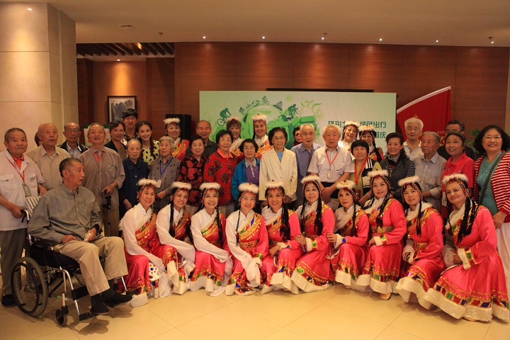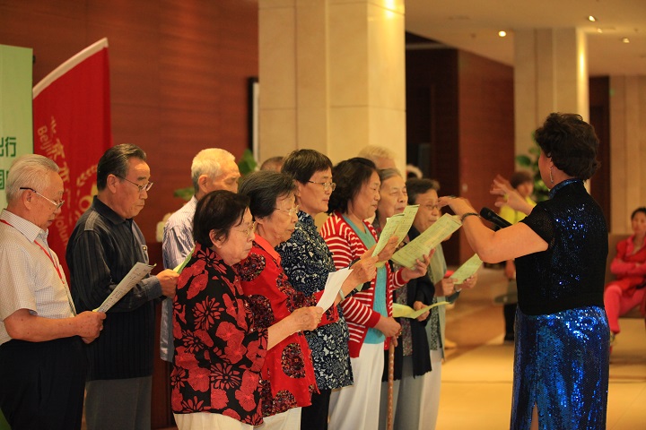 骑行活动结束后,北京市慈善义工协会、中华英才网、北京电视台共同为公寓老人带来了一场丰富的文艺表演,作为中秋节的礼物献给了老人们。