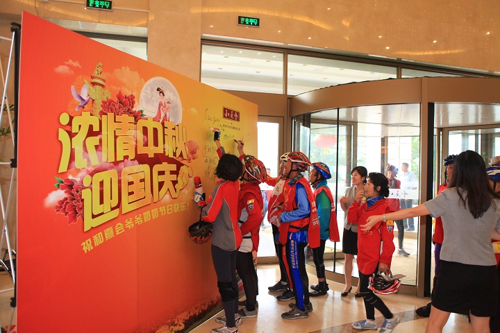 今天,和熹会老年公寓很荣幸能作为此次骑行活动的终点站,为每一位骑行的老人准备了热乎乎的姜糖水和丰富的营养午餐,尽自己一点绵薄之力作为对此次活动的支持!我们承诺把“健康”和“养老”很好的结合起来,把“健康北京、健康养老”作为和熹会老年公寓的口号,不断传播出去,让全社会的老人都过上健康、快乐、幸福的晚年生活!