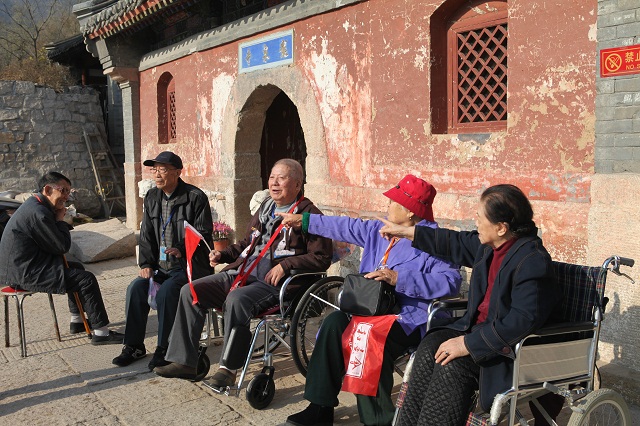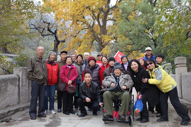 有的爷爷奶奶选择在集合地点附近的地方呼吸新鲜空气、观景、拍照;有的爷爷奶奶则选择自己爬山到“灵泉寺”,(灵泉寺:座落凤凰岭自然风景区内,2005年4月11日,龙泉寺正式对外开放成为佛教活动场所,并迎请中国佛教协会副会长兼秘书长学诚法师住持寺院。这是北京市海淀区建国以来第一所正式开放的三宝具足的佛教寺院。)大家互相搀扶,不忍错过丛林中的美景。用眼睛观看四面八方的美景,用心情沐浴着冬日温暖的阳光。不管是千年银杏还是魏老爷塔又或者是哼哈二将,都让爷爷奶奶们无比开心。