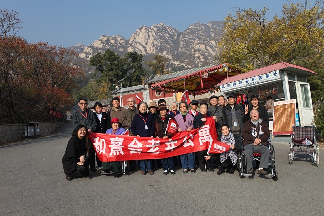 北京市海淀区和熹会老年公寓秋季外出游玩——领略凤凰岭风光于2013年11月5日拉开帷幕。此次活动共有33位老人参加,分两天进行。与老人同行的工作人员有医生、护士、照护师,对于不自理的老人进行一对一的陪伴,保证了每位游玩老人的安全!会员部还贴心的为每位老人准备了一个“爱心塑料袋”,里面有矿泉水、纸巾、小零食,以备不时之需。经过了短短的半小时车程,即到达了目的地——凤凰岭,正感叹没看够沿途风景的爷爷奶奶,一下车立刻被凤凰岭的美景吸引,迫不及待地去拍照、留影……