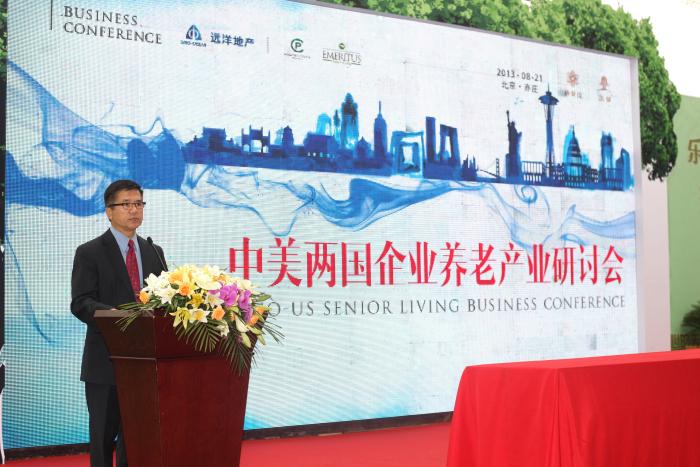 It’s indeed a pleasure to share the podium with so many distinguished guests, especially Vice Minister of the Ministry of Civil Affairs, Mr. Do Yupei, but also Mr. Nathan McLemore who is Managing Director of Columbia Pacific Management and Mr. Granger Cobb who is the President and CEO of Emeritus Senior Living. Both of the companies from my home state and my residence of Seattle, Washington.