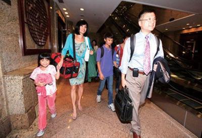 2011年8月12日晚,骆家辉一家5口各提行李,没有随从、保安,也没有鲜花、掌声及排场亮相北京首都国际机场。骆氏一家轻装简从,就象普通人出门旅行。据航班上多名乘客表示,在长达11个小时的漫长飞行中,骆家辉一家人在飞机上表现得非常低调、与普通旅客无异,大多数时间只是在自己的座位上休息,吃与大家一样的航空配餐。