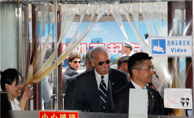 2011年8月18日,骆家辉陪同访华的美国副总统拜登到鼓楼附近“姚记炒肝”吃北京小吃。 他与拜登副总统等5人点了5碗炸酱面,10个包子,拌黄瓜,凉拌山药,凉拌土豆丝以及可乐等。