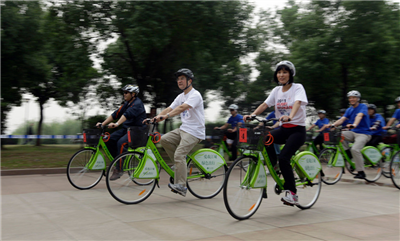 2011年9月23日,美国驻华大使骆家辉夫妇一行,来到武汉市汉口江滩公园参与“湖北武汉美国周”环保低碳自行车健身行。在活动现场,骆家辉骑上环保低碳自行车沿途观光汉口江滩。