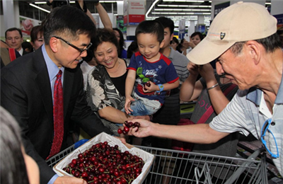 2013年7月2日,美国西北樱桃2013新品上市发布会在北京举行,美国驻华大使骆家辉出席活动,并客串“推销员”请顾客品尝新鲜樱桃。