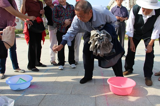 12日上午8点30分,老年人趣味运动会在欢快的腰鼓声中拉开了序幕。为了给老年人更多的快乐,中心养老护理员自发成立了腰鼓队,在节前利用休息时间进行了一个多月的突击训练。鲜艳的服装、整体的步伐、明快的鼓声,让老年人耳目一行、精神振奋。除了腰鼓表演,活动策划组还安排了拔河、套圈和夹弹珠等比赛项目,并准备了零食、牙膏、毛巾、香皂等非常实用的日常用品作为奖品,策划组方主任表示,这次的运动为了鼓励老人们都参与其中,不设置名次,保证每个人能得到奖品,大大提高了老年人参与的积极性。