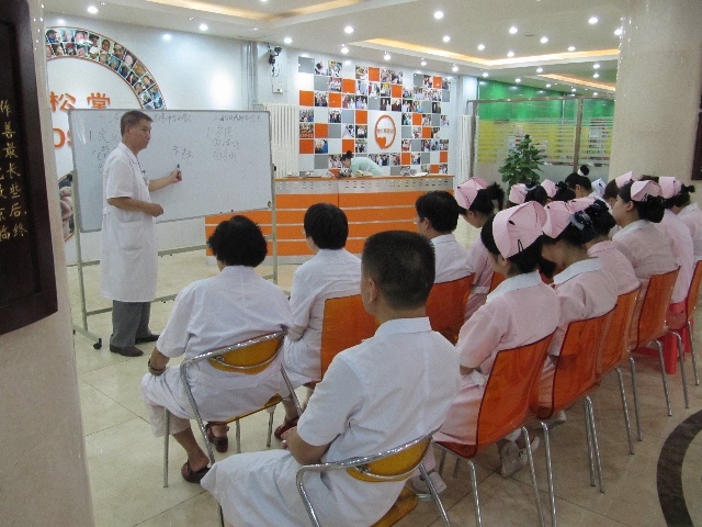 每天早八点的交班会上,医护人员除了进行日常交接,也会对一些临时发生的状况进行探讨交流。而医术精湛的老大夫们,更是会把自己的经验加以传授,对大家在工作中遇到的困难加以指导。松堂每日的早交班会,也就成了同事们互相交流学习的时间。