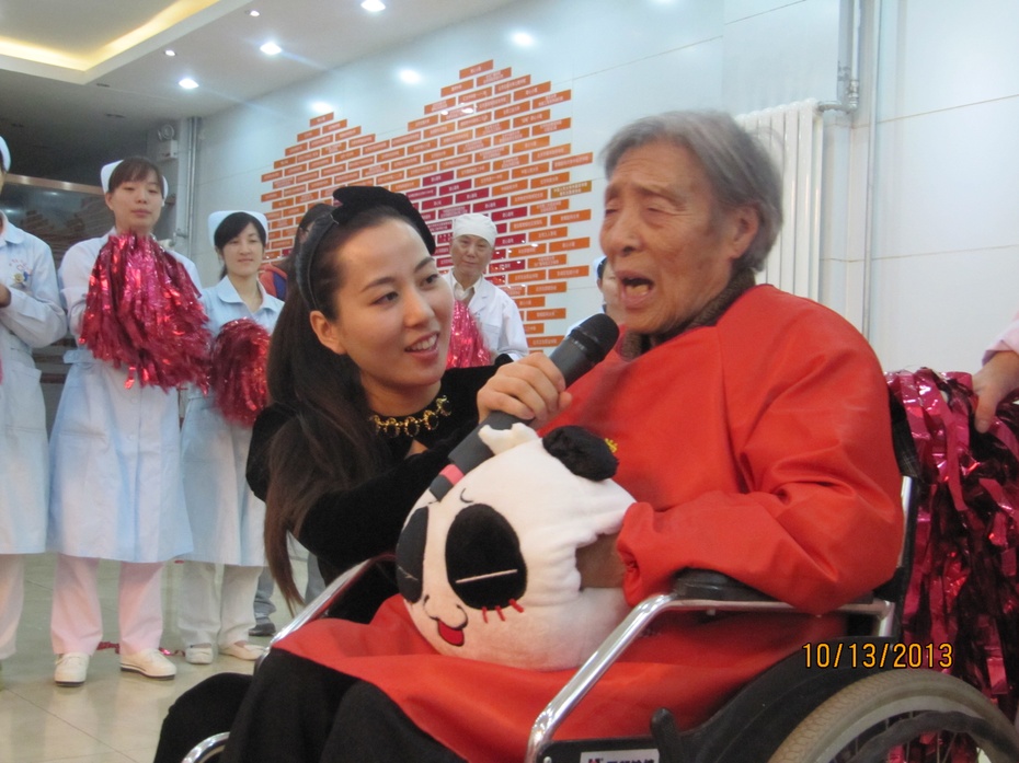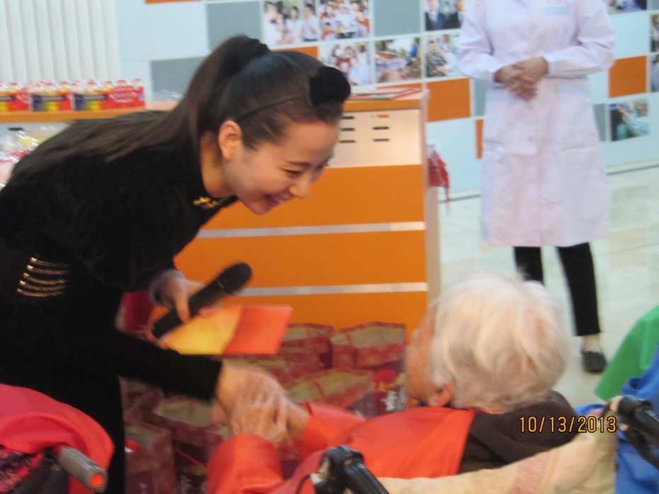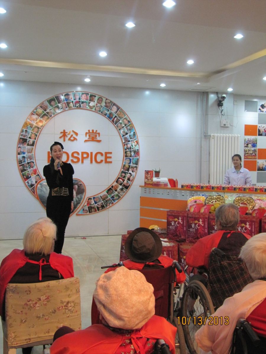 2013年10月13日,农历九月初九重阳节,全总文工团青年歌唱家张可来到松堂关怀医院慰问老人。