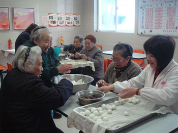 元宵习俗,少不了包汤圆,座谈后,老人们主动参与食堂包汤圆工作,围坐一桌,大家开开心心包起了汇满爱心的汤圆,大家庭的温馨弥漫在各个角落,相信2011年我们的老年朋友们会健康快乐每一天!