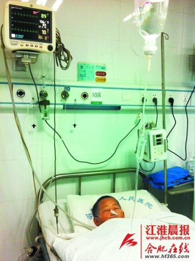 老人毫无知觉和自理能力,目前正躺在合肥市第二人民医院ICU病房内。